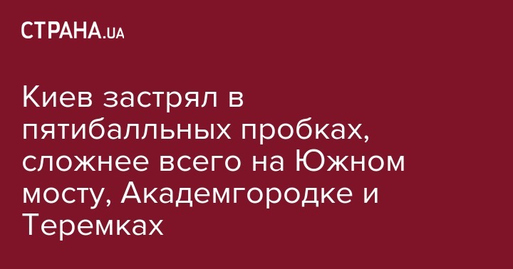 Самыми проблемными местами для водителей на правом берегу стала Одесская площадь в районе станции метро "Теремки". Из-за ДТП и ремонтных работ пробка растянулась до Ипподрома. Скорость движения на этом участке снижена до 5 км в час.