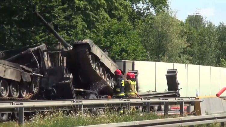 Вблизи города Шецин столкнулись два тягача, перевозивших танки. В результате столкновения начался пожар, танки сгорели.