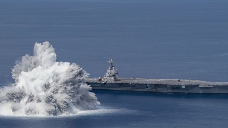 Бойцы Военно-морского флота США взорвали в Атлантическом океане бомбу весом более 18 тонн, чтобы испытать ее воздействие на авианосец "Джеральд Р. Форд", который вошел в состав флота в 2017 году. В результате судно выдержало испытание.