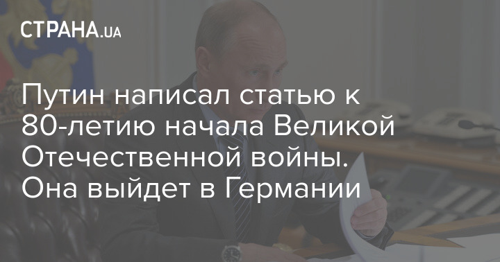 Президент Российской Федерации Владимир Путин написал статью к 80-летию начала Великой Отечественной войны. Она выйдет в немецком издании Die Zeit ("Время").