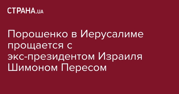 Президент Петр Порошенко в Иерусалиме сегодня утром участвует в официальной церемонии прощания с бывшим президентом Израиля Шимоном Пересом. Об этом сообщает пресс-служба главы государства.