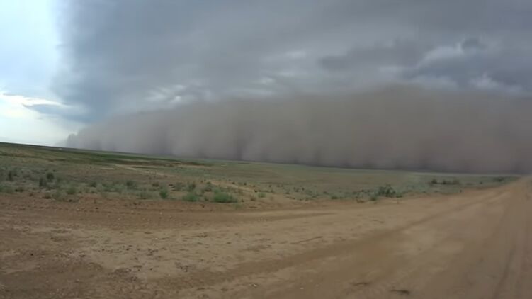 Так выглядит пылевая буря за городом. Скриншот из видео