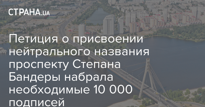 На сайте Киевского горсовета петиция о присвоении проспекту Степана Бандеры нейтрального названия набрала 10 тысяч подписей, необходимые для рассмотрения предложения. Об этом свидетельствует раздел электронных петиций на сайте Киевсовета.