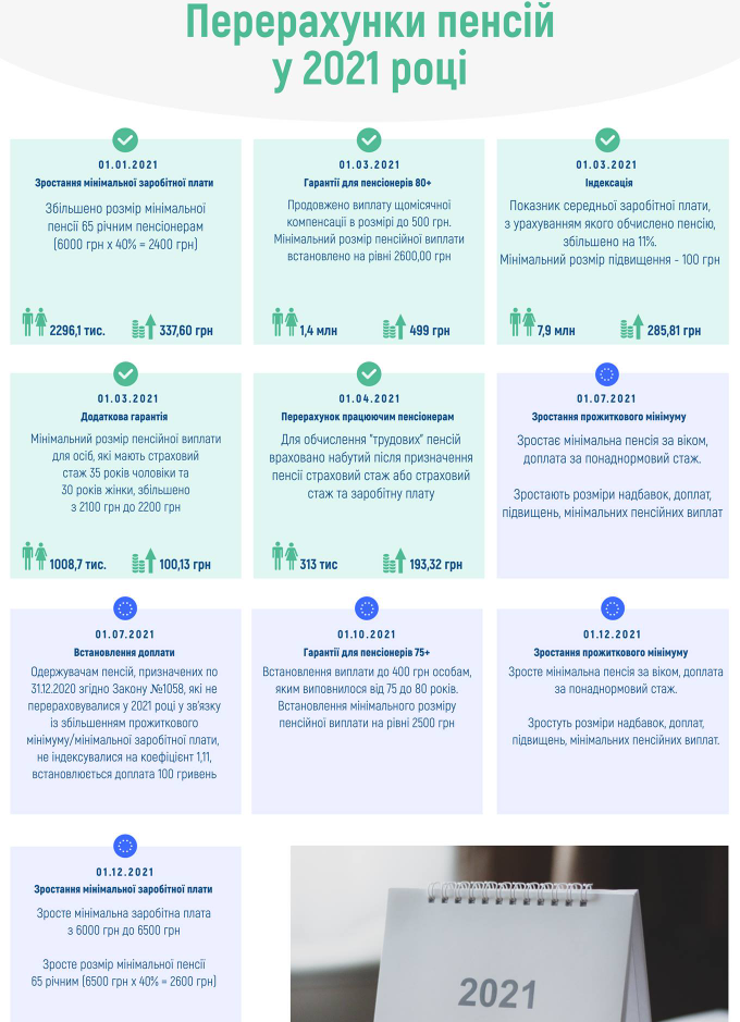 2. Гарантии для пенсионеров от 80 лет – с 1 марта продлили выплату 500 грн компенсации, минимальная выплата достигла 2600 грн для 1,4 млн пенсионеров;