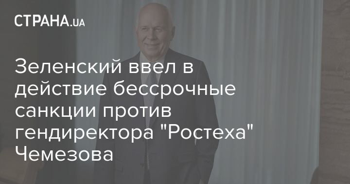 Президент Владимир Зеленский подписал указ о введении в действие решения Совета национальной безопасности и обороны о бессрочных санкциях против генерального директора российской государственной корпорации "Ростех" Сергея Чемезова.