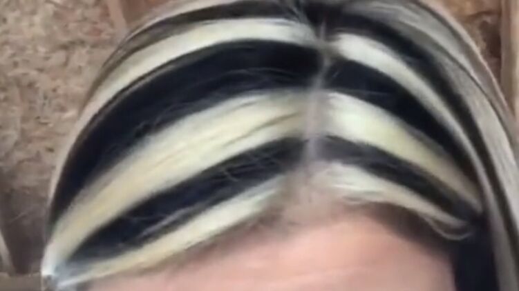 Затем она показала фото, которое вышло после ее посещения салона. Как видно на записи ей окрасили пряди в черный и платиновый цвета, которые ровно чередуются между собой и напоминают окрас зебры.