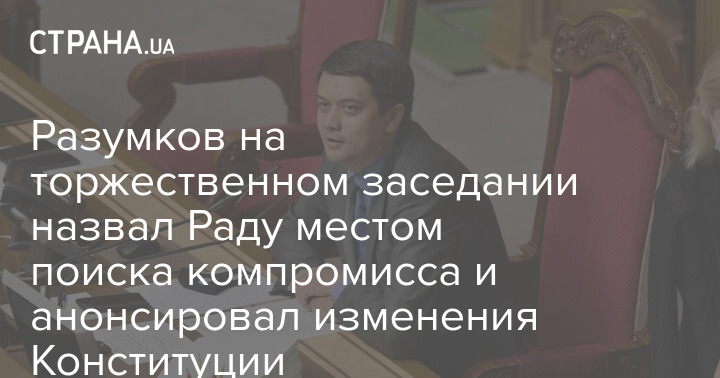 На торжественном заседании Верховной Рады, которое проходит в понедельник, 28 июня, выступил спикер парламента Дмитрий Разумков. Он заявил, что Рада является местом для поиска компромисса, а также анонсировал внесение изменений в Конституцию.