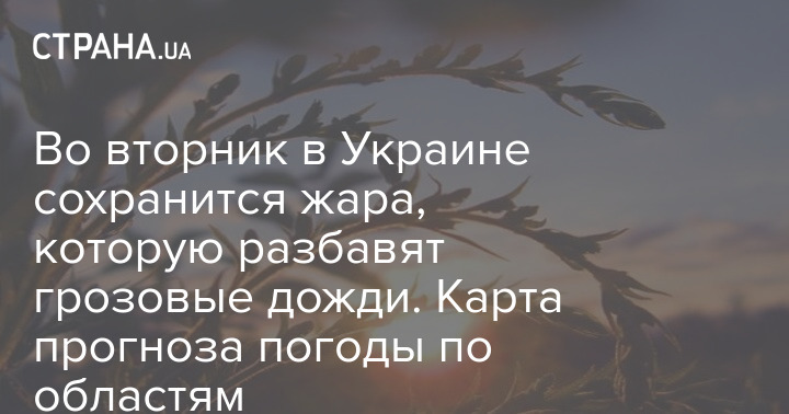 Во вторник в Украине сохранится жара, которую разбавят грозовые дожди. Карта прогноза погоды по областям