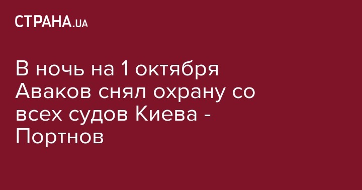 В ночь на 1 октября министр внутренних дел Арсен Аваков снял охрану со всех киевских судов. Об этом на своей странице в социальной сети Facebook сообщает украинский политик и юрист Андрей Портнов.