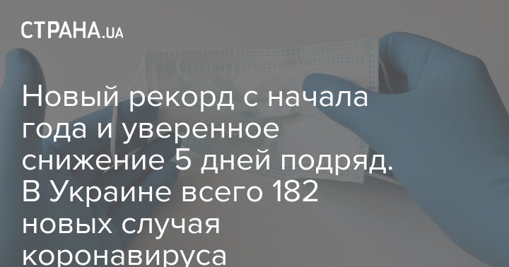 Новый рекорд с начала года и уверенное снижение 5 дней подряд. В Украине всего 182 новых случая коронавируса