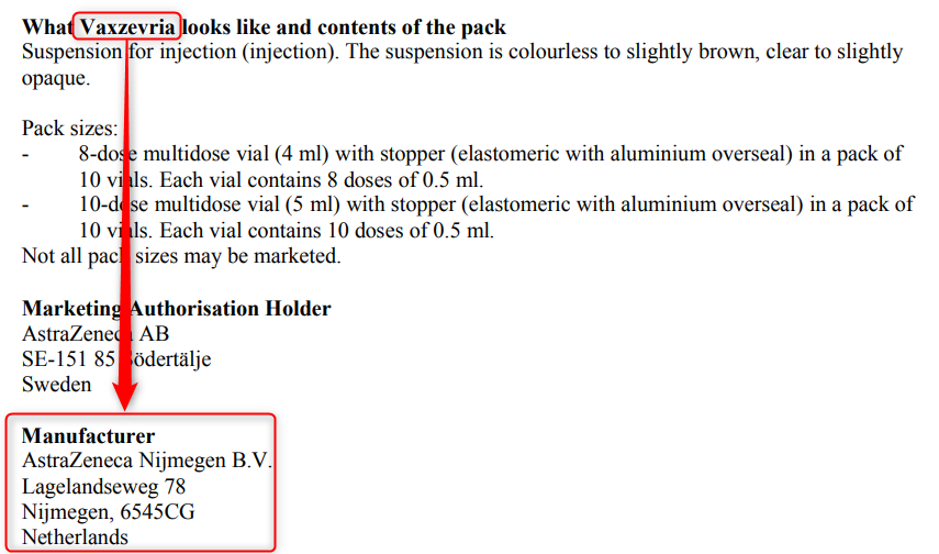 Если же углубиться в детали, то вакцина Vaxzevria имеет одну отличительную черту от других аналогов "АстраЗенеки". Как указано на сайте производителя, ее делают на заводе в голландском городе Неймеген (данные, актуальные на май 2021 года).
