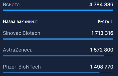 Вместе они занимают второе место по количеству поставок. То есть ими можно привить порядка 750 тысяч украинцев.