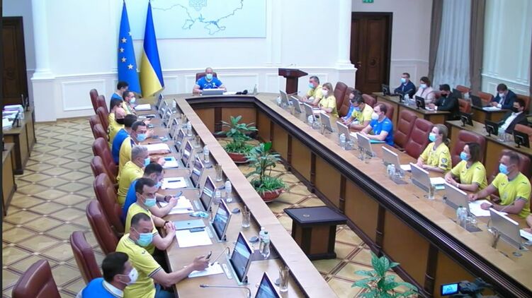 Члены правительства пришли на заседание в форме сборной Украины по футболу. Фото: Telegram/ Гончаренко