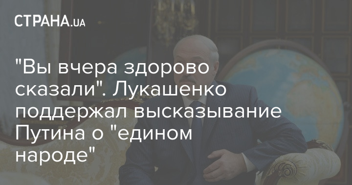 Президент Беларуси Александр Лукашенко поддержал заявление своего российского коллеги Владимира Путина о том, что Украина и Россия - один народ, который ни в чем не виноват. По мнению Лукашенко суверенитет Украины "тает", а руководство пошло "другим путем".