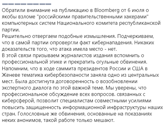 В США обвинили российскую разведку в кибератаке на сети республиканцев. В посольстве России опровергают это