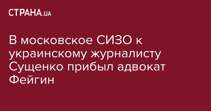 Адвокат Марк Фейгин, который ранее защищал Надежду Савченко, прибыл в московское СИЗО "Лефортово", где находится задержанный по подозрению в шпионаже украинский журналист Роман Сущенко. Об этом сообщает Укринформ.