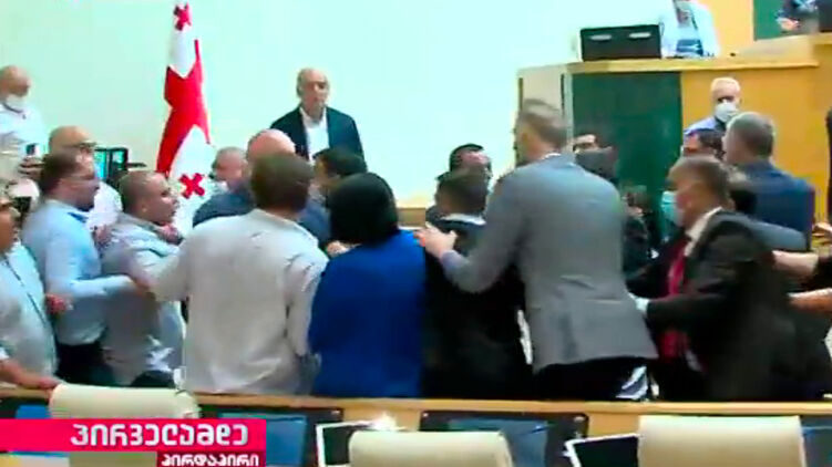 В грузинском парламенте произошла драка между депутатами. Фото: Скриншот из видео
