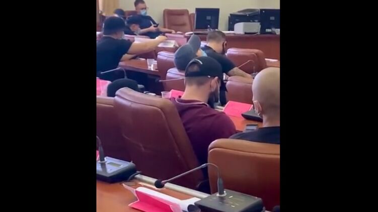 Парни спортивной наружности заняли места депутатов. Скриншот с видео