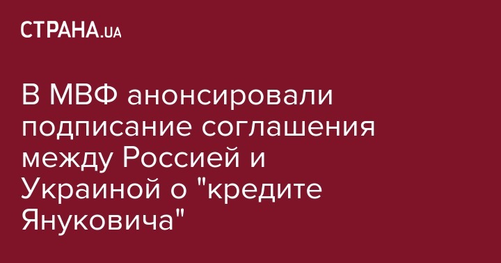 Международный валютный Фонд (МВФ) в отчете своей официальной миссии, указал, что соглашение между Россией и Украиной о реструктуризации еврооблигаций на $3 млрд, находящиеся в собственности РФ, будет подписано. Об этом сообщает в понедельник, 3 октября агентство Интерфакс.