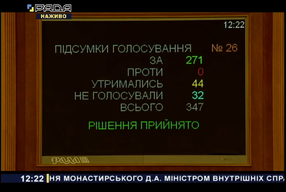 Денис Монастырский назначен новым главой министерства внутренних дел. За кандидатуру Монастырского на посту главы МВД проголосовали 271 депутат.