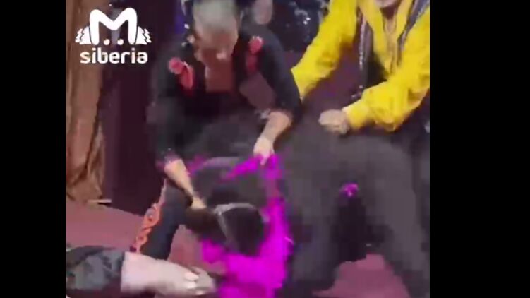 В России в Кемеровской области медведь напал на циркачку на сцене. Видео