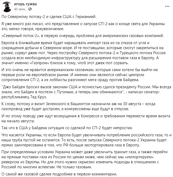 К слову, потому и визит Зеленского в Вашингтон назначили аж на 30 августа – когда газопровод уже будет достроен, а конгрессмены еще будут в отпуске.