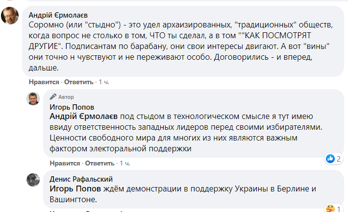 Под постом у Попова развернулась дискуссия, "стыдно" ли западным странам.