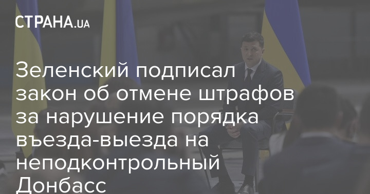 Зеленский подписал закон об отмене штрафов за нарушение порядка въезда-выезда на неподконтрольный Донбасс