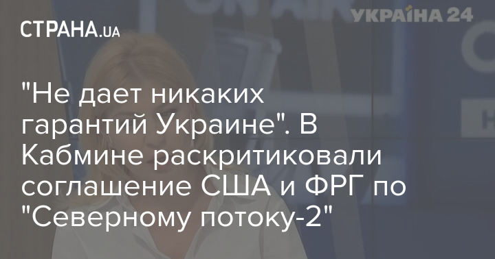 Вице-премьер по вопросам европейской и евроатлантической интеграции Ольга Стефанишина прокомментировала совместное заявление США и ФРГ относительно газопровода "Северный поток - 2". По ее словам, оно не содержит никаких гарантий безопасности для Украины.