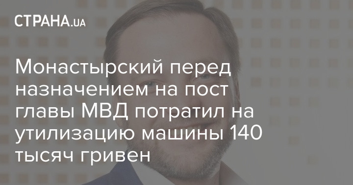 Министр внутренних дел Денис Монастырский перед своим назначением в МВД потратил 140 тыс. гривен на утилизацию своего автомобиля.