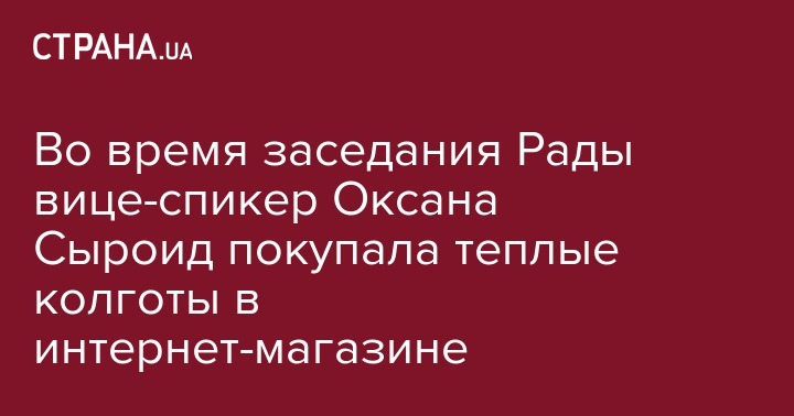 Сегодня, 4 октября, во время пленарного заседания Верховной Рады вице-спикера Оксану Сыроид поймали на отлынивании от руководства парламентом. Один из руководителей Рады занималась онлайн-шоппингом в разгар рабочего дня. Фото доказательства покупок опубликовал фотограф Богдан Бортаков на своей странице в Facebook