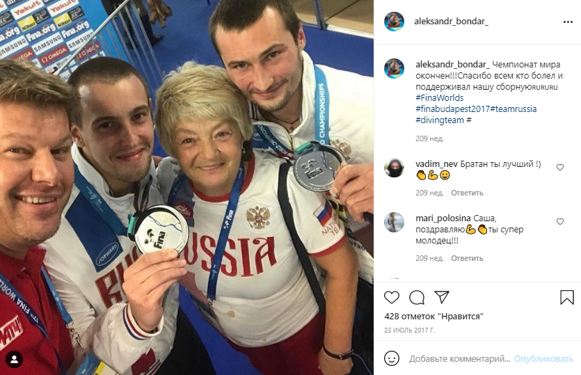 "Конечно, это хорошее подспорье и повышение конкуренции в нашей стране. Все-таки у него [Бондаря] много регалий. Он чемпион Европы и бронзовый призер Чемпионата мира. Я с ним сам выступал и лично знаком - отличный парень", - рассказывал президент Федерации прыжков в воду Москвы Глеб Гальперин в интервью Sobesednik.