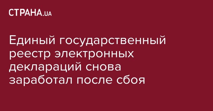 "НАПК сообщает о восстановлении государственным предприятием "Украинские специальные системы", на технологической площадке которого находится аппаратный комплекс Реестра (…), электроснабжения, сбои в котором сегодня днем вызвали ограничения доступа к Реестру. В настоящее время система е-декларирования работает", - указано в опубликованном сообщении.