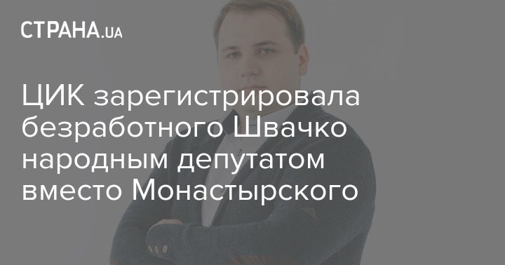 Центральная избирательная комиссия (ЦИК) зарегистрировала народным депутатом Верховной Рады Украины вместо Дениса Монастырского, который занял должность министра внутренних дел, Антона Швачко от партии "Слуга народа".