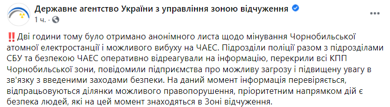 В среду, 28 июля, на электронную почту "Чернобыльской АЭС" от анонима пришло сообщение о "минировании". Сейчас на территории станции ищут взрывчатку. Кроме того, на предприятии объявили режим аварийной готовности.