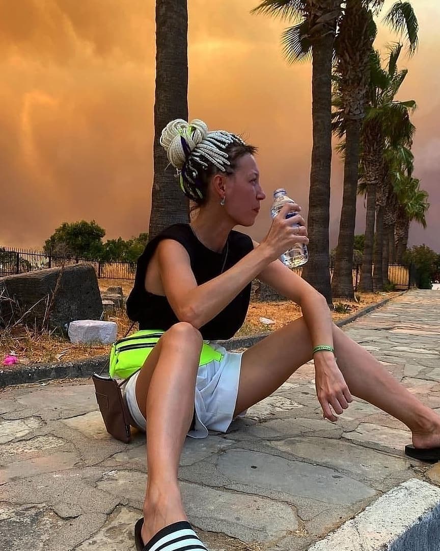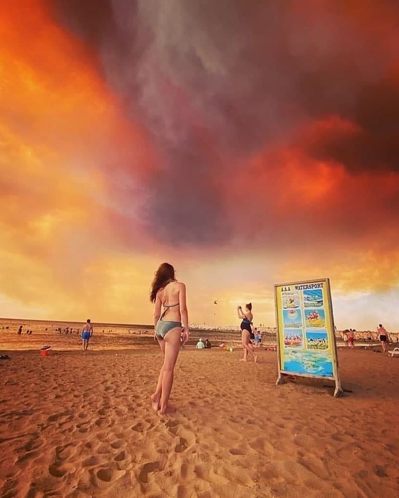Многие туристы тем временем публиковали фото с отдыха, где видно как небо затянуло дымом и огненным заревом.