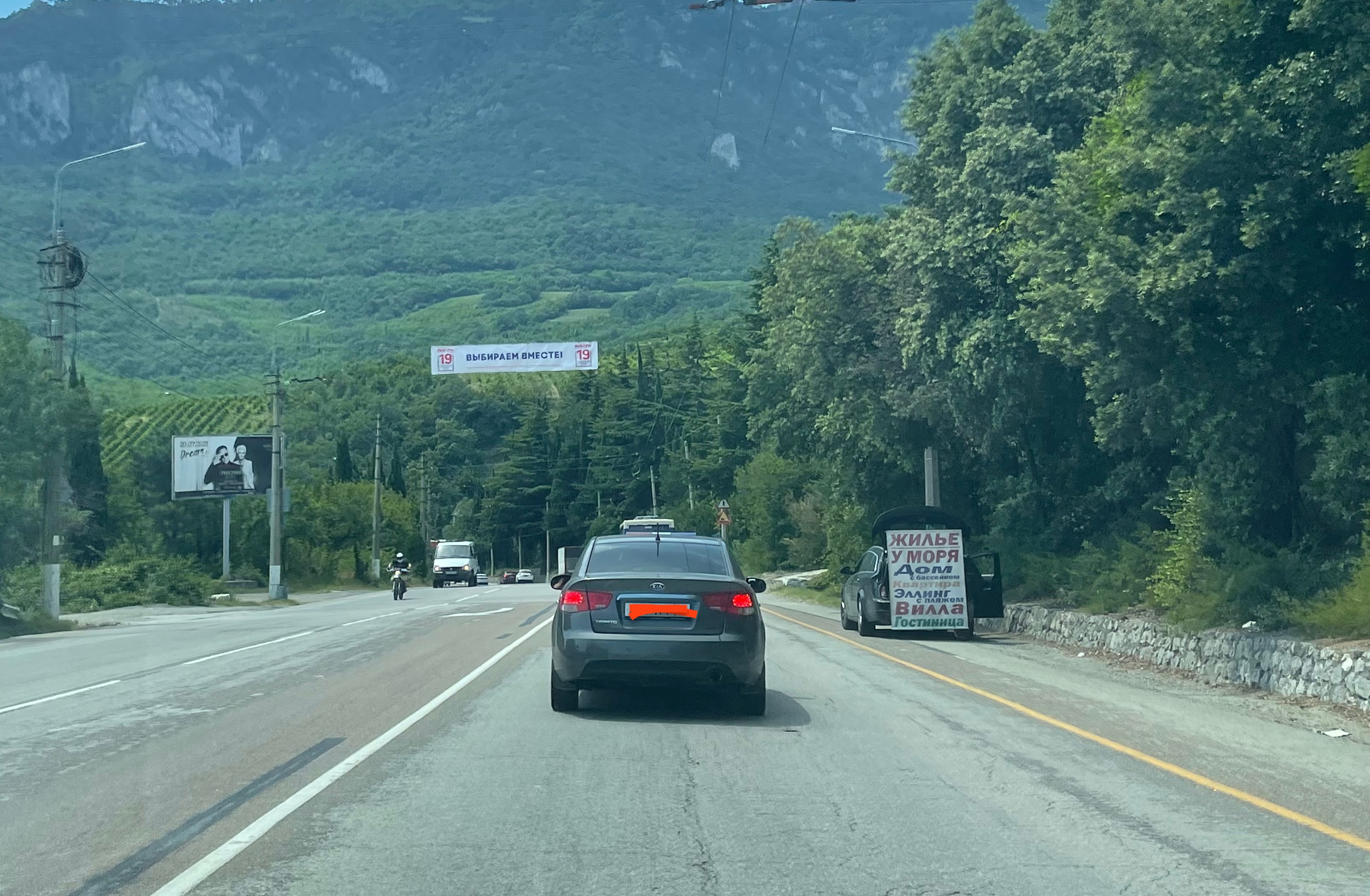 Мой отдых активный - на автомобиле я объехала восточное и южное побережье, добралась до Севастополя. Именно там больше всего российских патриотических лозунгов - можно встретить баннер во весь дом с цитатой Владимира Путина.