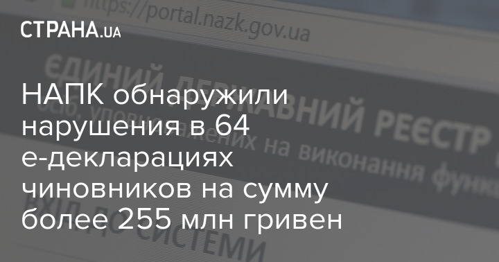 НАПК выявило признаки уголовного или административного правонарушения в 64 из 294 деклараций. Общая сумма недостоверных сведений в денежном выражении составила более 255 млн грн.