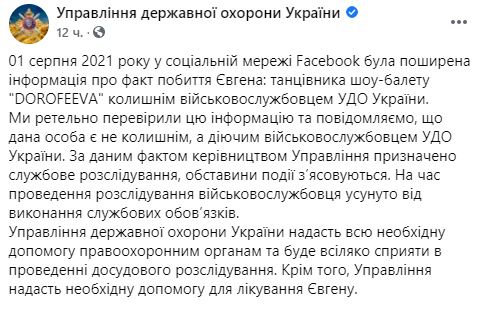 В процессе поисков оказалось, что на танцора напал военнослужащий из Управления государственной охраны (УДО). Этот орган спецназначения охраняет Кабмин, Верховную Раду, должностных лиц высокого уровня, например президента.