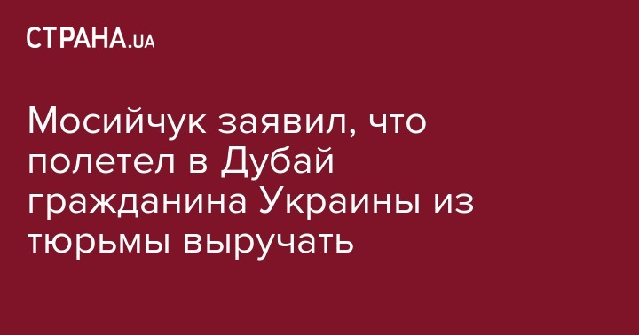 "Игорь Владимирович Мосийчук действительно 04.10.2016 улетел в ОАЭ, чтобы как народный депутат способствовать освобождению гражданина Украины из-под ареста по сфальсифицированным обвинениям. Сейчас Мосийчук И.В. вместе с Консулом Украины в ОАЕ, и дипломатическим коллективом Посольства Украины, посещает тюрьму Шарджа, общается с адвокатами и правозащитниками", - говорится в заявлении пресс-службы нардепа.