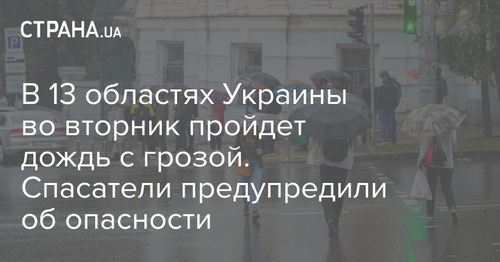 По данным спасателей, сегодня дожди накроют восточные, южные, большинство центральных регионов. Также днем во вторник на Прикарпатье ожидаются грозы, местами с градом и шквалами 15-20 метров за секунду. В связи с этим ГСЧС объявили желтый уровень опасности, который характеризирует потенциально опасную погоду.