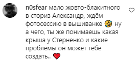 "мало желто-голубого в сториз Александра, ждем фотосессию в вышиванке, ну а чего, ты же понимаешь, какая крыша у Стерненко и какие проблемы он может тебе создать".