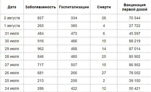 Да и в первые дни августа число новых инфицированных уже один раз достигло восемьсот человек. То есть - ежедневный прирост немного увеличивается.