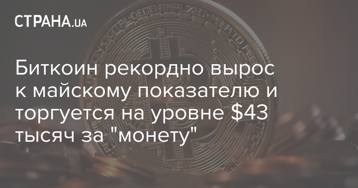 По состоянию на вечер воскресенья стоимость криптовалюты удерживается на отметке выше 43 тысяч долларов за монету.