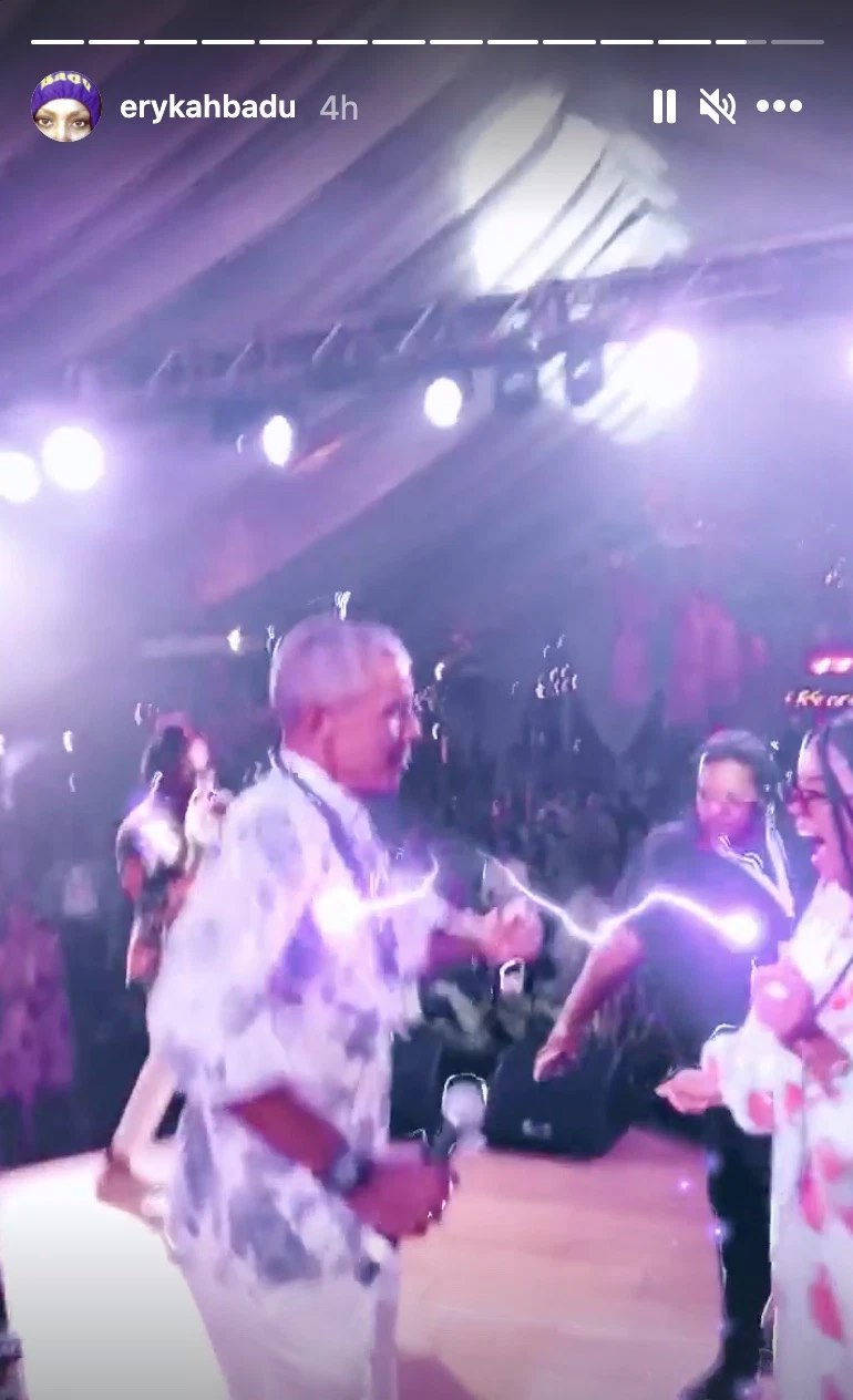 Певица Эрика Баду сфотографировала бывшего президента на танцполе. Фото: Erykhabadu/Instagram