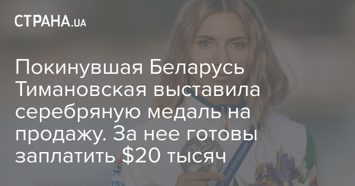 Покинувшая Беларусь Тимановская выставила серебряную медаль на продажу. За нее готовы заплатить $20 тысяч