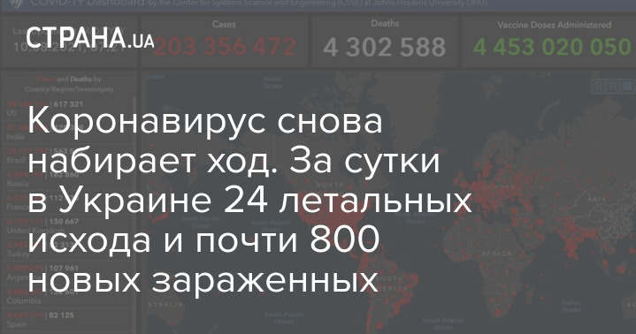 А тем временем университет Джона Хопкинса, который мониторит ситуацию с пандемией в режиме он-лайн привел свежие данные на утро 10 августа 2021 года. Итак, с момента начала пандемии на Земле коронавирусом заразились уже 203 356 472 человек, умерли - 4 302 588 человек.