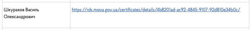 Также прямо накануне назначения сертификаты о знании украинского языка были выданы двум заместителям министра инфраструктуры Мустафе Найему (сдал экзамен на 89%) и Василию Шкуракову (85%). Правда в этом случае их имена оказались среди нескольких десятков других чиновников, прошедших экзаменацию.