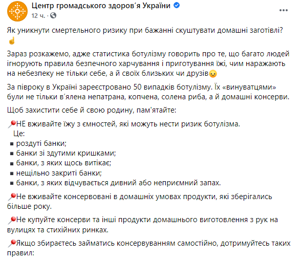 Ранее в МОЗ рассказали украинцам о первых симптомах ботулизма и что делать при их проявлении.