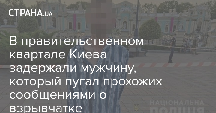 Во время патрулирования в правительственном квартале украинской столицы полицейские из полка особого назначения №2 заметили мужчину, который приставал к прохожим и сообщал, что имеет при себе взрывоопасные вещества.